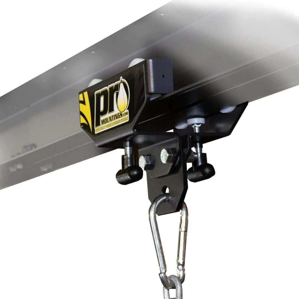 Turn your I-Beam into a punch bag sliding track rail quickly and easily with the ProMountings I-Beam Roller Mount punch bag hanger!
